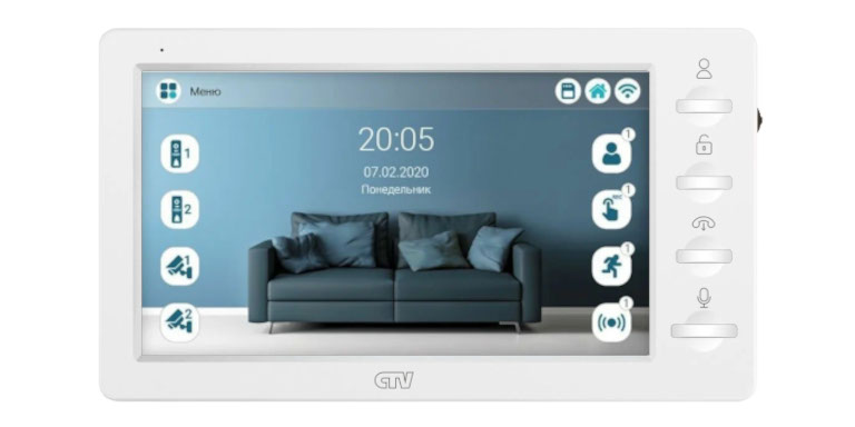 Сенсорный 9" монитор видеодомофона с возможностью доступа со смартфона через приложение CTV Home.