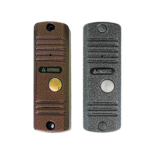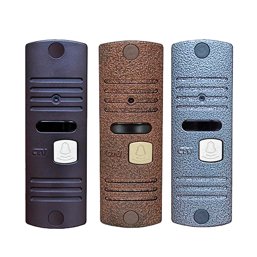 Вызывная панель для цветного видеодомофона, разрешение 700 твл, угол по гор. 74 гр, подсветка кнопки вызова, компактный корпус, цв. бронза/серебро/"гавана", монтаж. уголок и козырек в комплекте